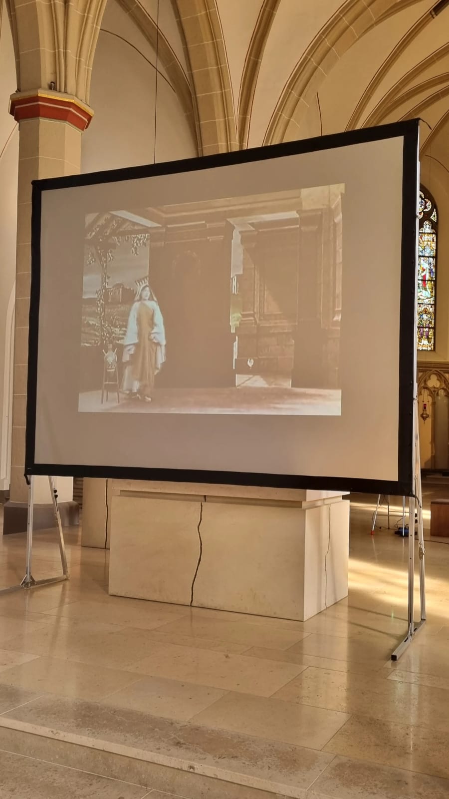 Der französische Film aus den Jahren 1902/03, ein Meilenstein der frühen Kinogeschichte, erzählt in kunstvollen Bildern das Leben Jesu – von der Geburt bis zur Auferstehung. In der besonderen Atmosphäre der Kirche entfalteten die Szenen eine ganz eigene Wirkung.